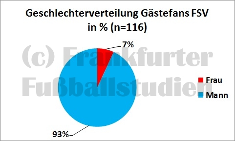Ist der Besuch des Fußballstadions primär ein männliches Ergeignis, so gilt dies noch mehr für die Auswärtsfans. Knapp 7% der Befragten waren Frauen. Gründe liegen im generellen hohen Zeitaufwand einer Auswärtsfahrt, besonders hinsichtlich der Unterschiedlichen Freizeit-gestaltung von männlichen und weiblichen Jugendlichen.