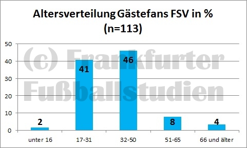 Im Rahmen der Zuschauerbefragungen beim FSV Frankfurt wurde, im Sinne einer Vorfeldstudie, begonnen die Gästefans zu befragen. Dies geschah am Ende der Saison 2012/13 an drei Spieltagen bei unterschiedlichen Vereinstypen (Kreisstadtverein, Ruhrgebietsverein und einem Traditionsverein aus den neuen Bundesländern). Beim FSV sind die Bedingungen für eine Datenerhebung im Gästeblock besonders günstig. Dazu gehören eine generell friedliche Atmosphäre, ein leichter zum Zugang zum Gästeblock sowie die Unterstützung durch den Verein/ den Sicherheitsdienst.